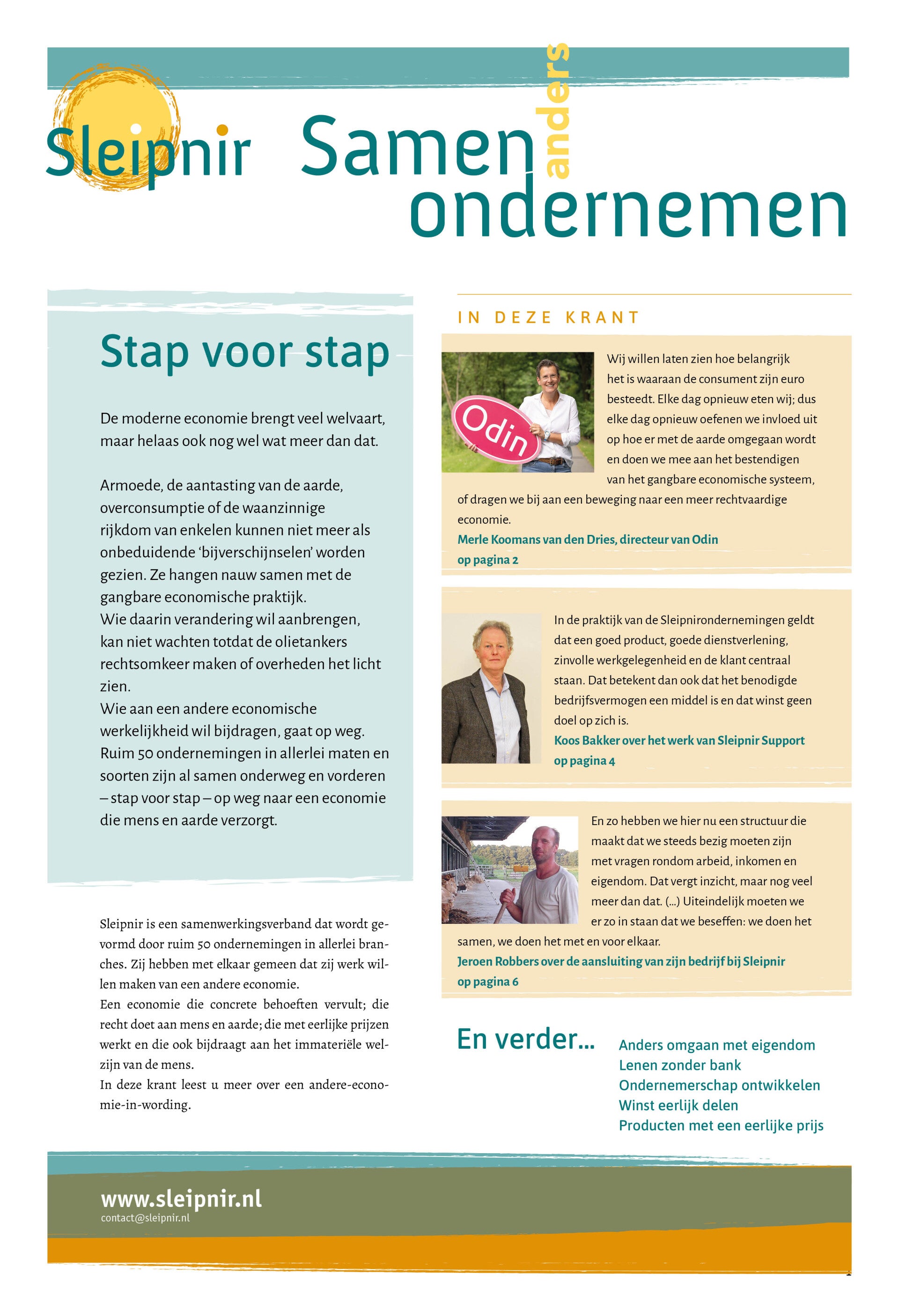 Over de ervaringen die zij in de praktijk opdoen; over de instrumenten die binnen Sleipnir ontwikkeld worden en over de achterliggende ideeën en idealen vind je alles in de eenmalige krant die net verschenen is.